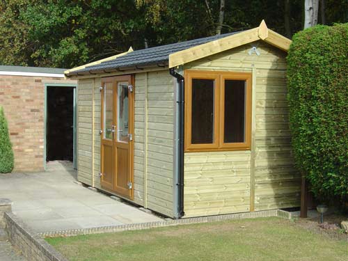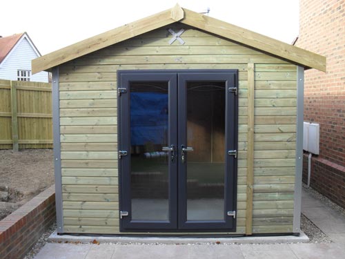 The Apex Pro Workshop uses a unique composite tile effect roofing system. This structural roof system allows us to slope the roof at a particular angle, ensuring the ridge is always under 2.5 metres at the highest point, and meaning that the building will not require planning permission.