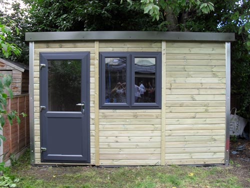 The pent veranda Pro Workshop offers a practical working environment coupled with an area in which to relax. The building will always be under 2.5 metres high and therefore not normally require planning permission, even if sited up against your neighbour’s fence or boundary.